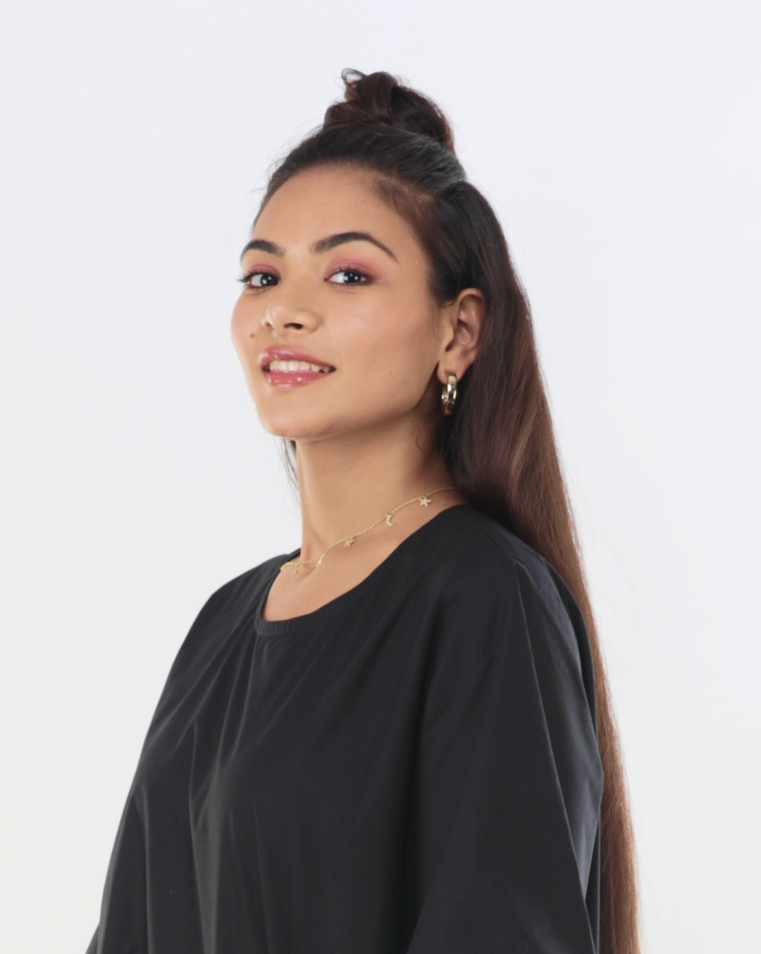 The Black Cotton Pocket Dress offers breathable comfort with its 100% cotton fabric and relaxed oversized fit. Its round neckline and soft structure ensure ease of movement, while the beaded butterfly and bee patch pocket add subtle, playful detail. Suitable for everyday casual wear, it comes in sizes XS to 2XL for all-day comfort.